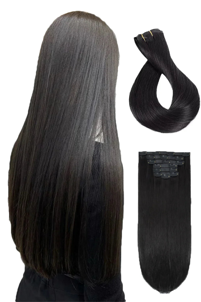 Seamless Clip-in Hair Extensions feature silicone wefts and clip-in technology for quick, temporary volume and length. No glue, no tape—just stunning hair in minutes